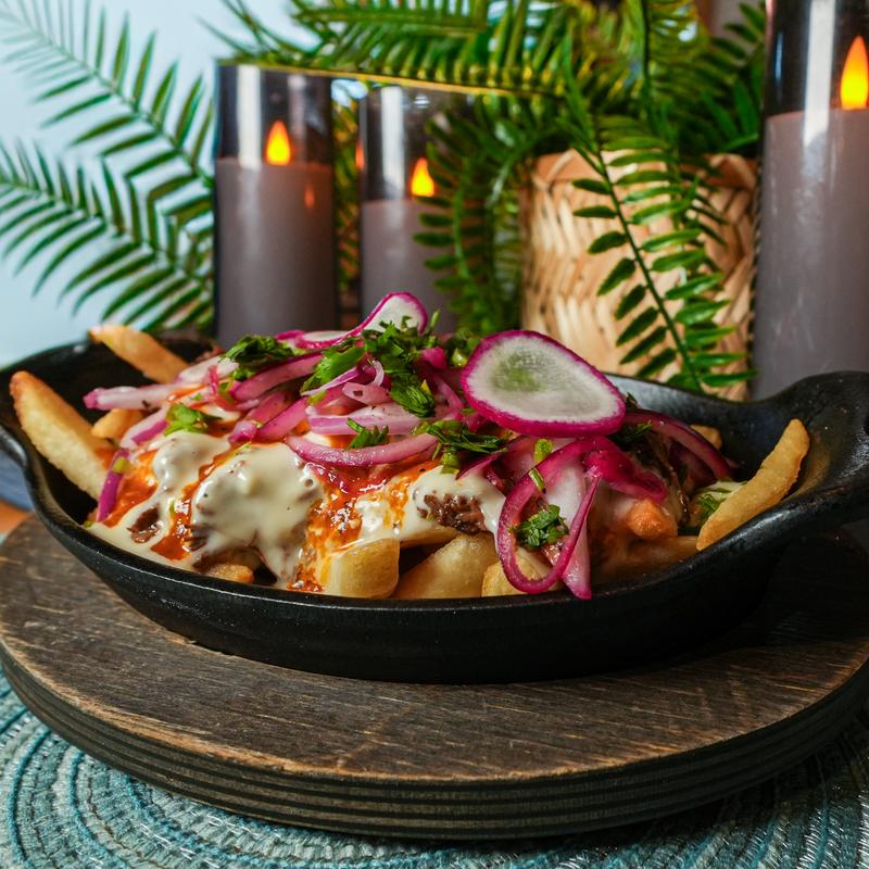 Hot skillet filled with peppers, onions, and your choice of meat. Served with rice, beans, lettuce, pico de gallo, sour cream, guacamole, and homemade flour tortillas.